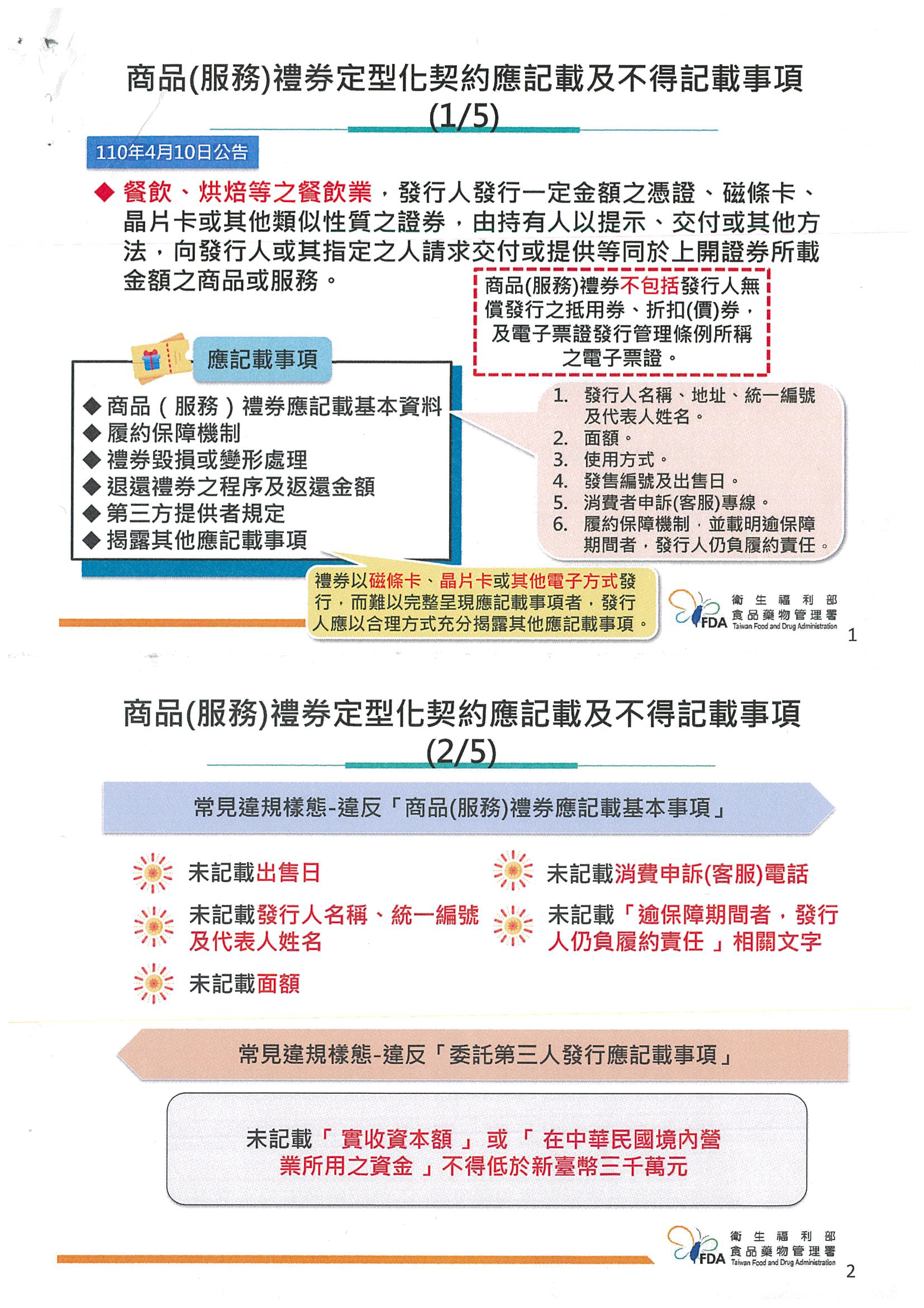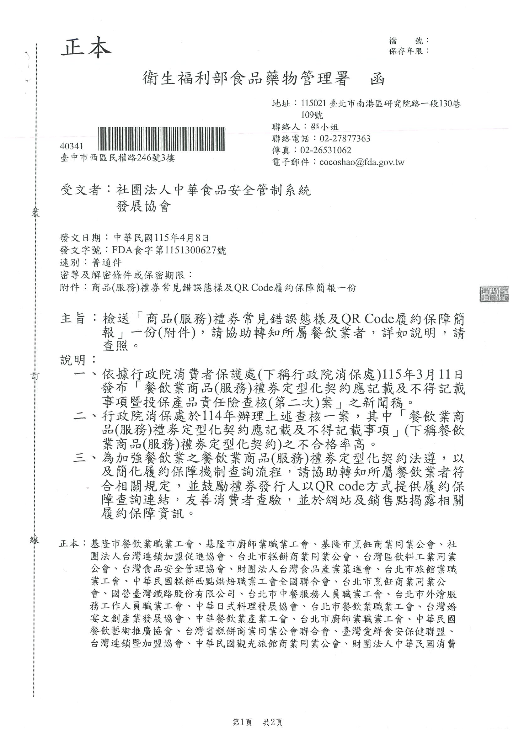 檢送「商品(服務)禮券常見錯誤樣態及QR Code履約保障簡報」一份(附件),請協助轉知所屬餐飲業者。