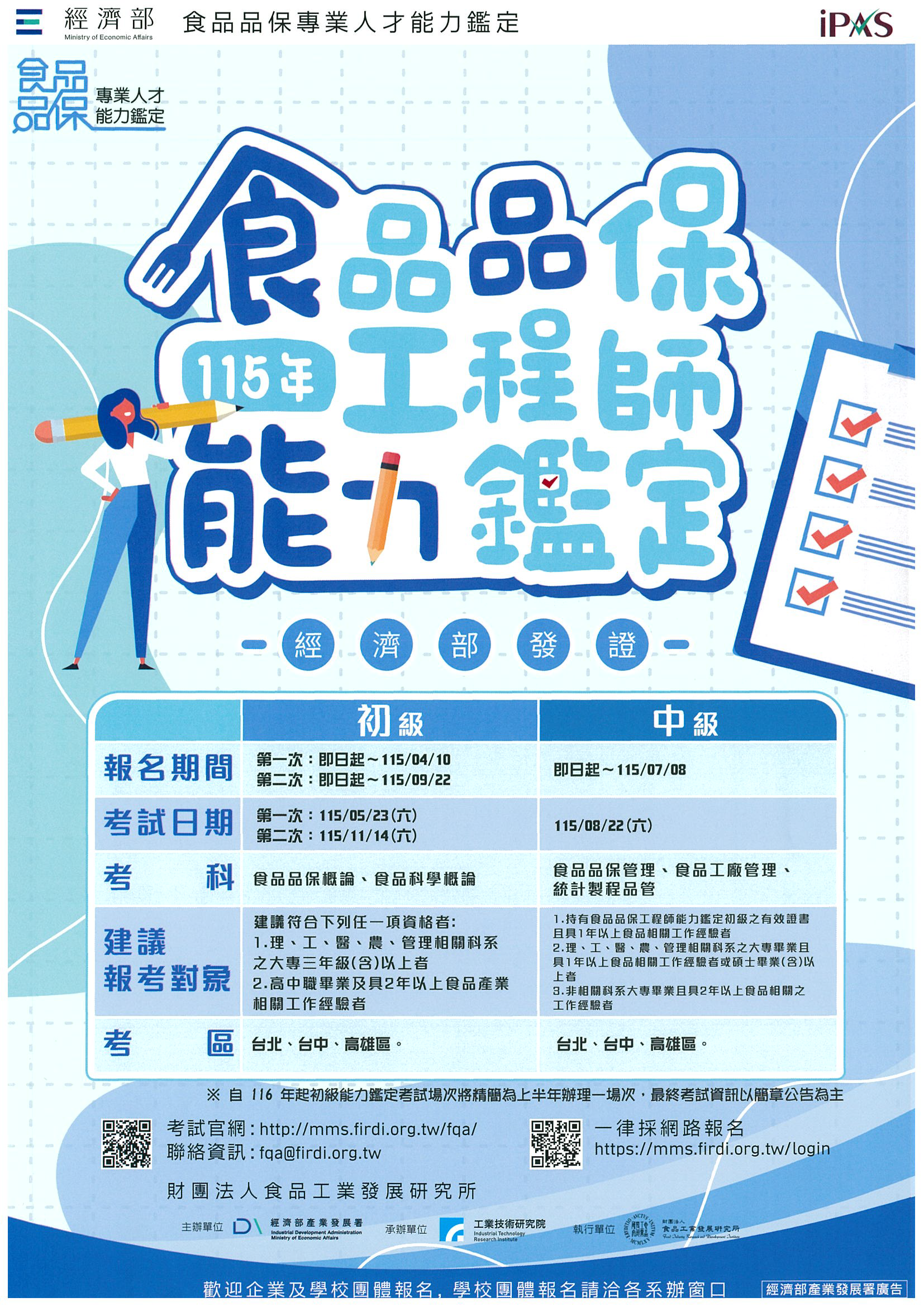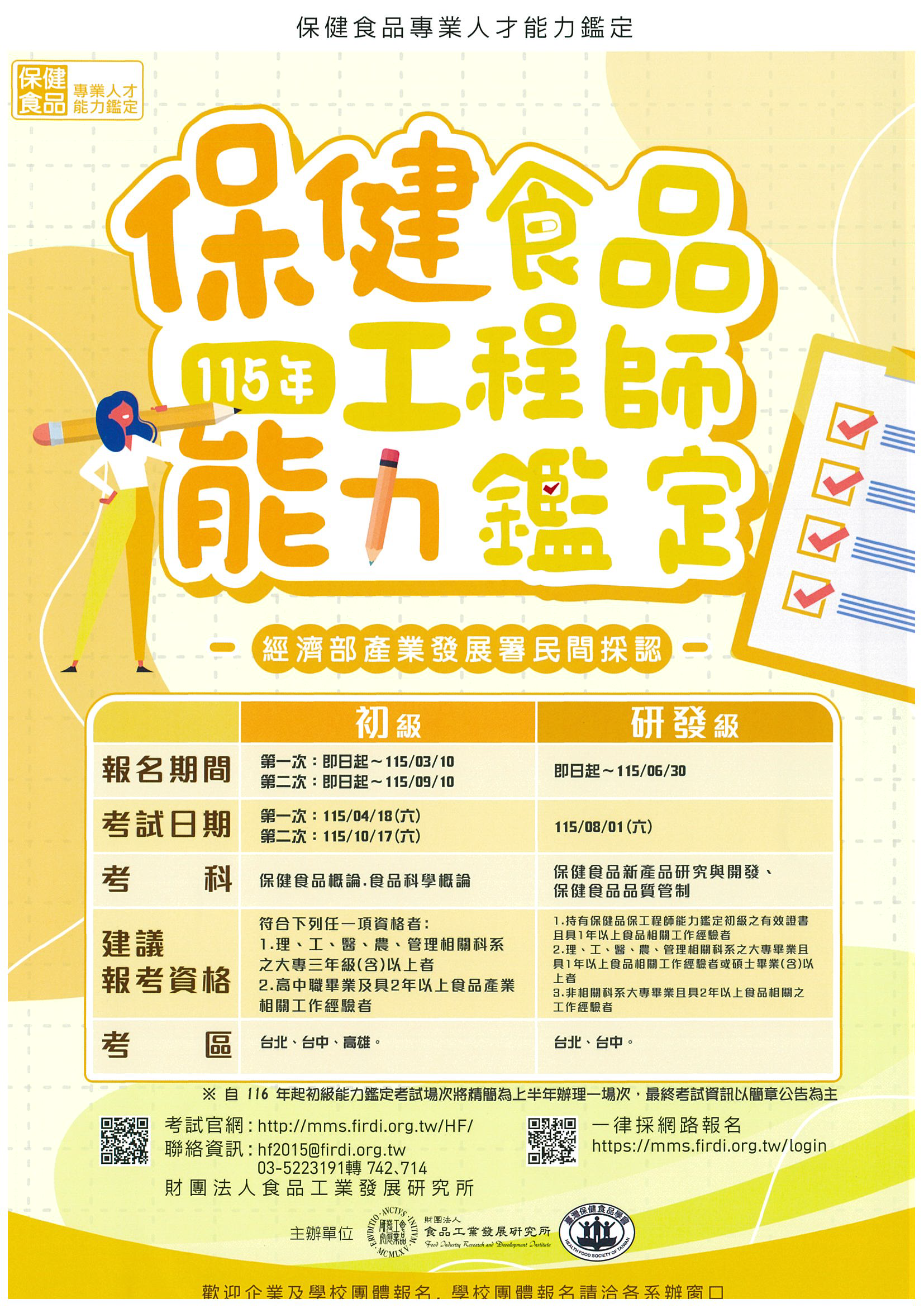 【食品所】115年度保健食品工程師能力鑑定&食品品保工程師能力鑑定
